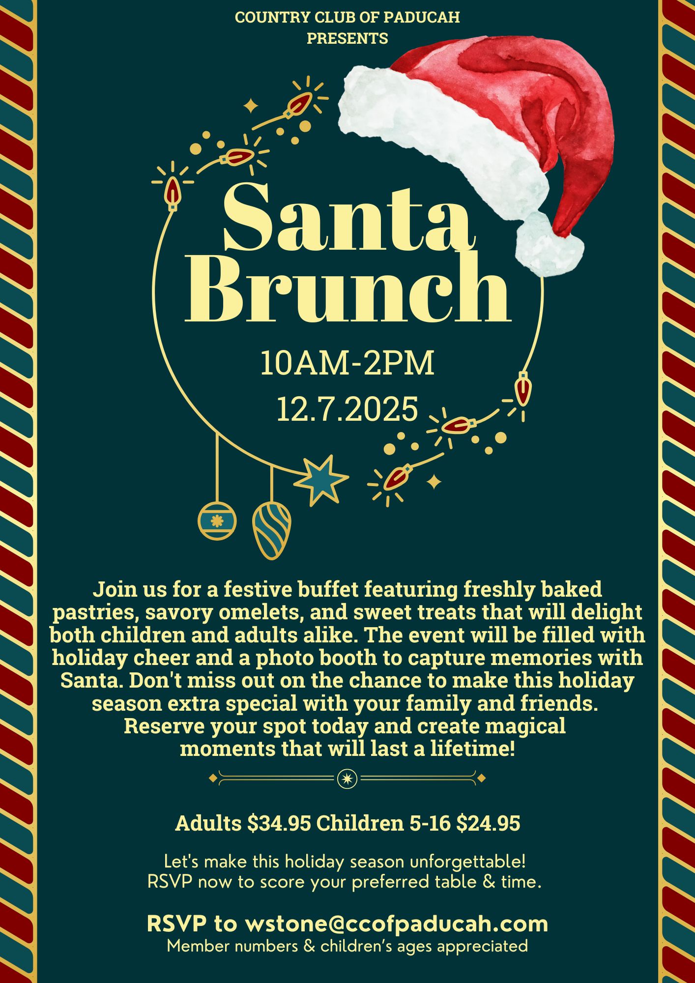 Home Events Santa Brunch Santa Brunch + Add to Google Calendar + iCal / Outlook export Date Dec 07 2025 Expired! Time 10:00 am - 2:00 pm Category Dining Share this event Search for: Recent Posts Course Update 12/12 Dinner Specials – December 2-14 Modified Cart Path Only 11/19 Lunch Special – December 2 – 14 CCP Event Update Archives December 2025 November 2025 October 2025 September 2025 May 2025 April 2025 November 2024 October 2024 Categories Course Report (App) Dining Room / Social Events (App) Golf (App) Membership (App) Tennis (App) Uncategorized Meta Log in Entries feed Comments feed WordPress.org