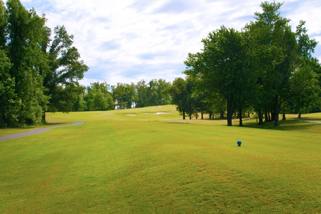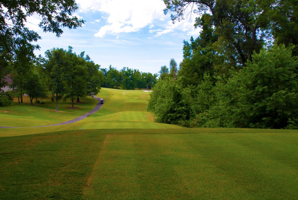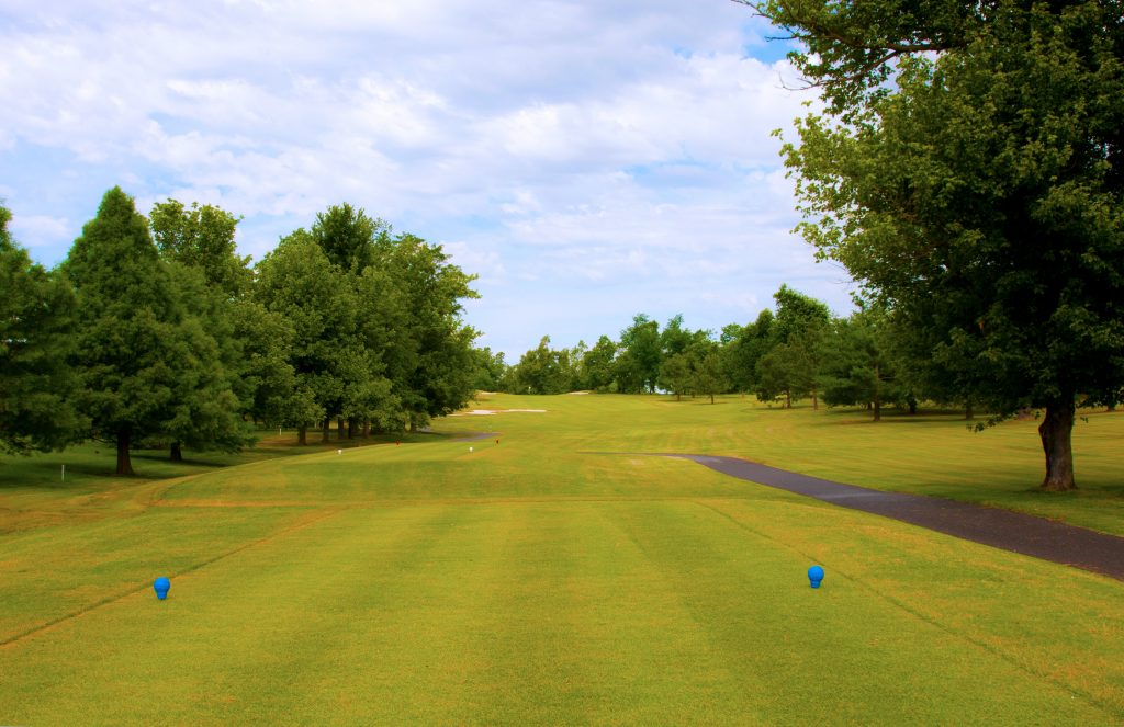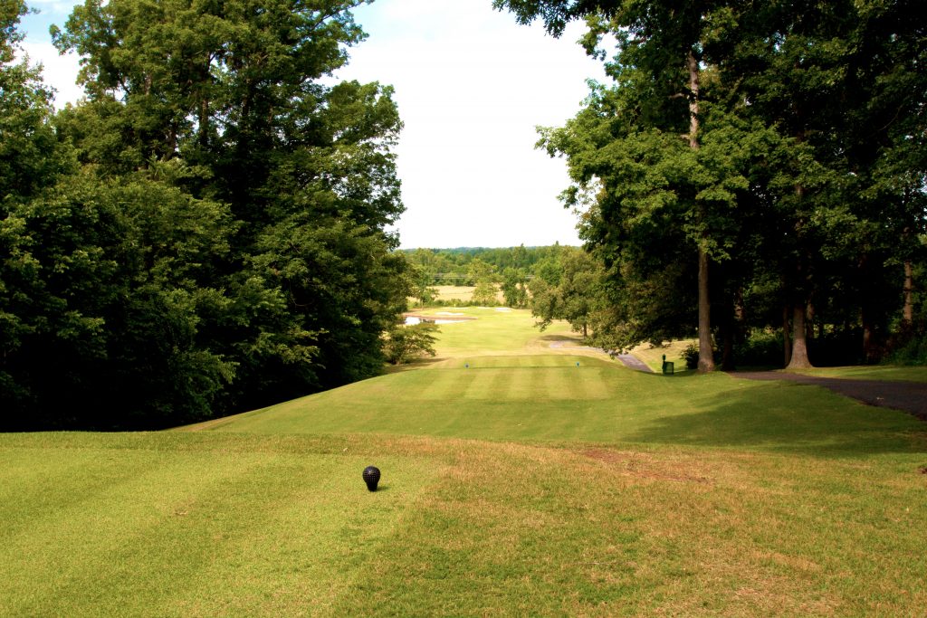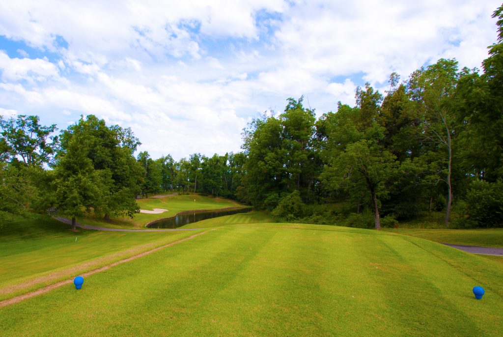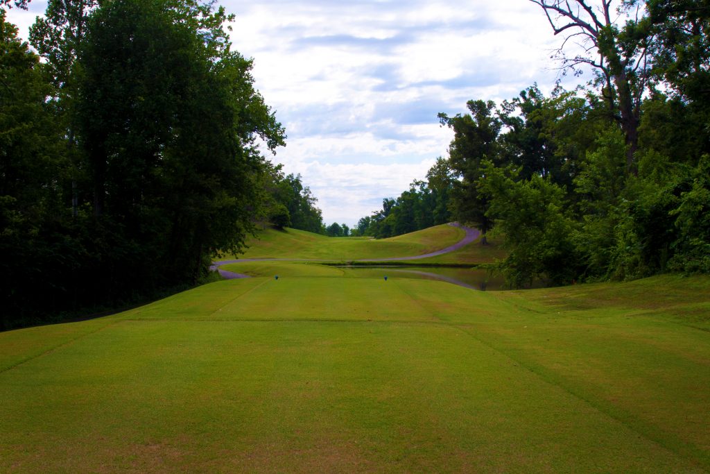 This hole is known as “the toughest par 4 in Western Kentucky”. A player can challenge the fairway bunker on the right, setting up a shorter approach. Or you can play safe to the left and short which will set up a long iron approach. Once the tee shot is in play, make sure to avoid the right side of the green which falls off into a steep slope.