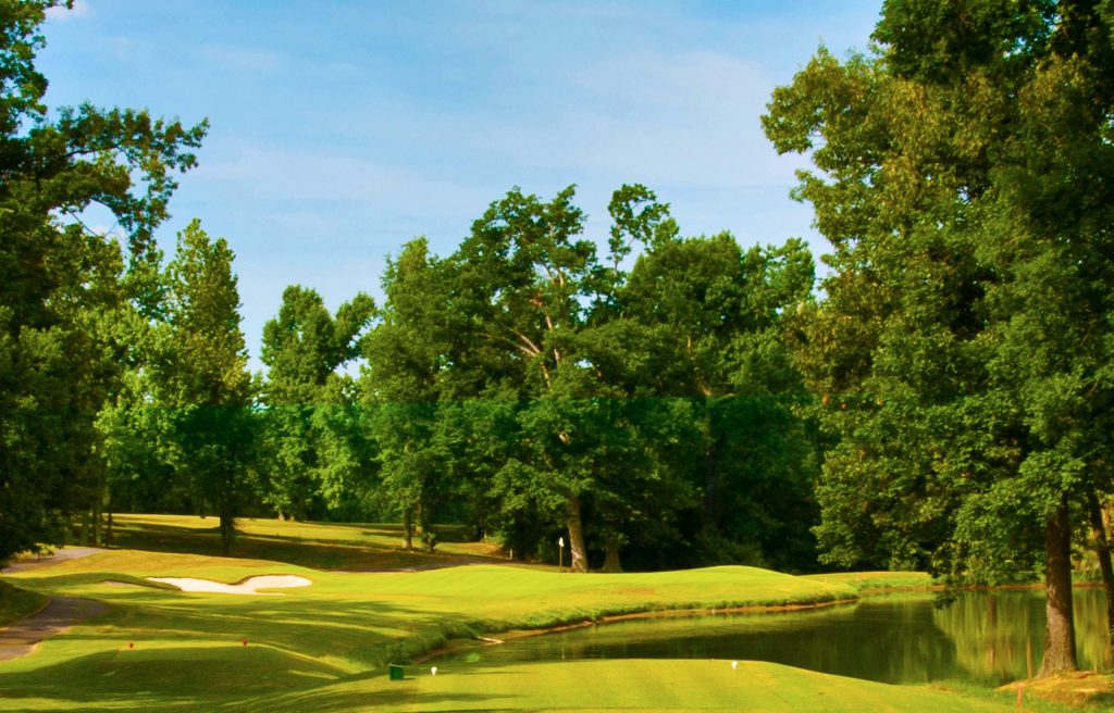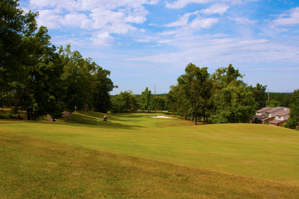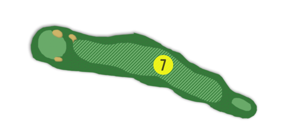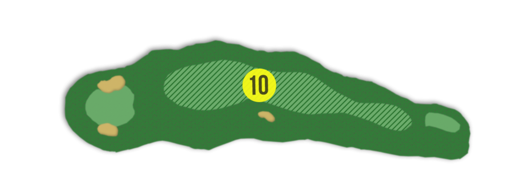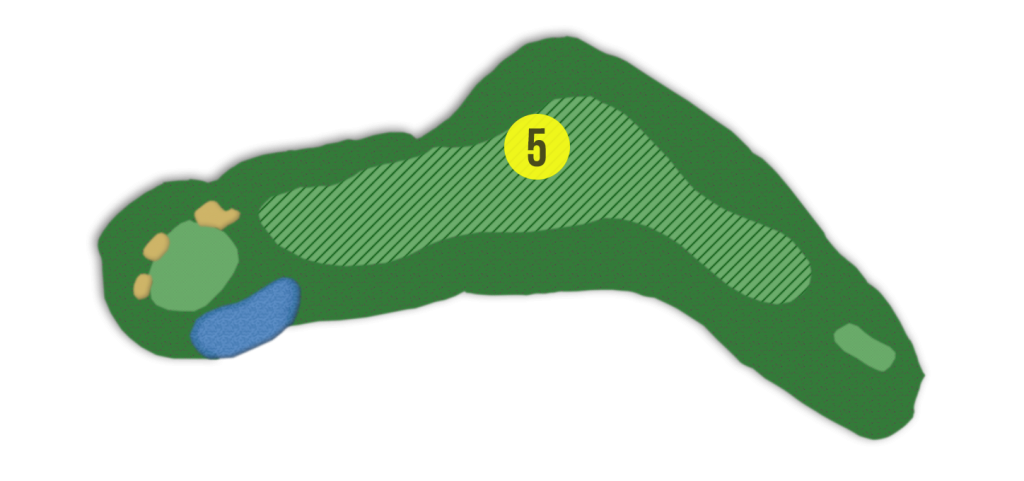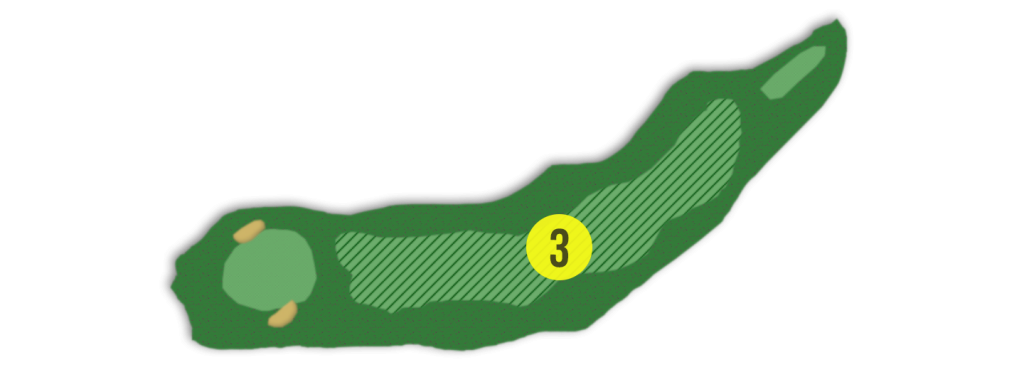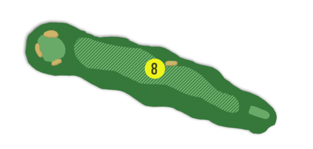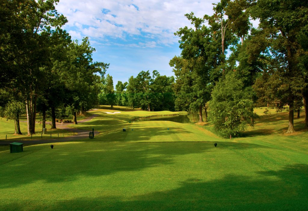 This hole is known as “the toughest par 4 in Western Kentucky”. A player can challenge the fairway bunker on the right, setting up a shorter approach. Or you can play safe to the left and short which will set up a long iron approach. Once the tee shot is in play, make sure to avoid the right side of the green which falls off into a steep slope.