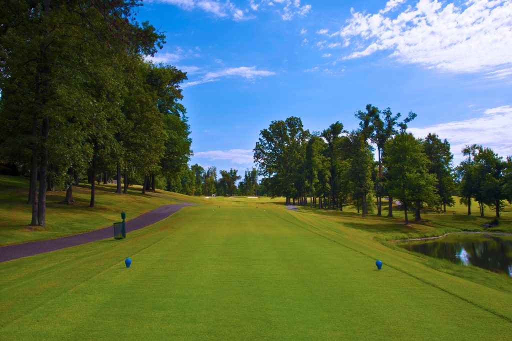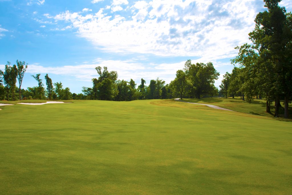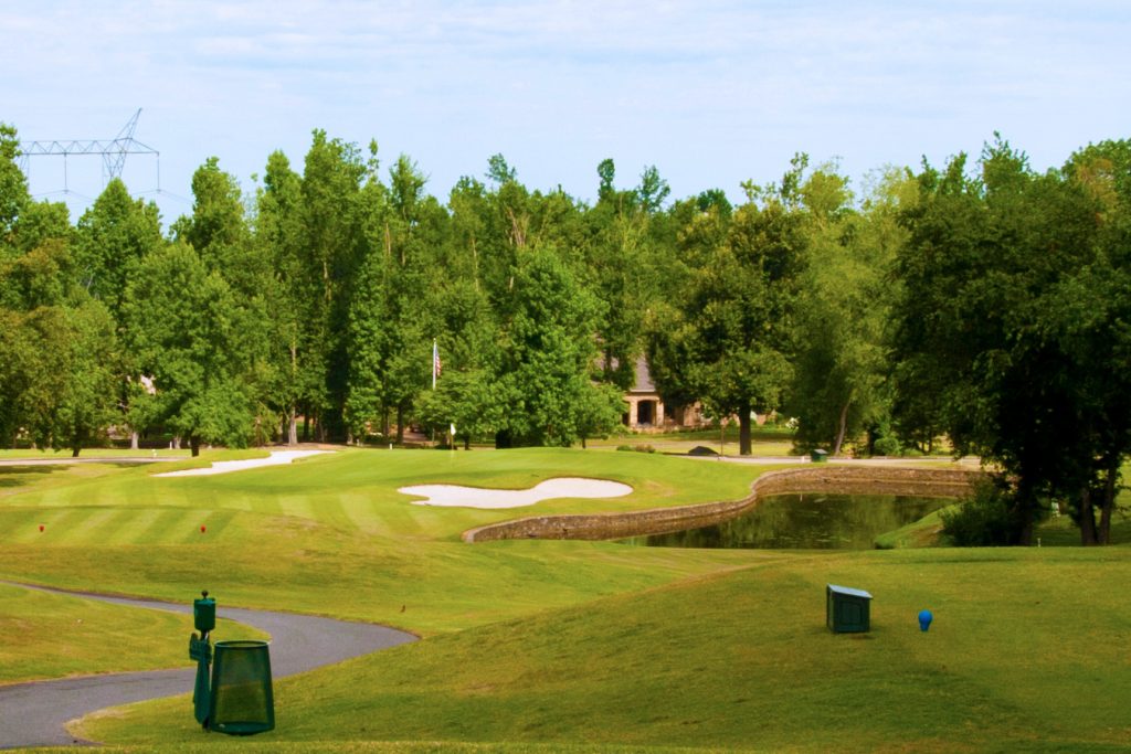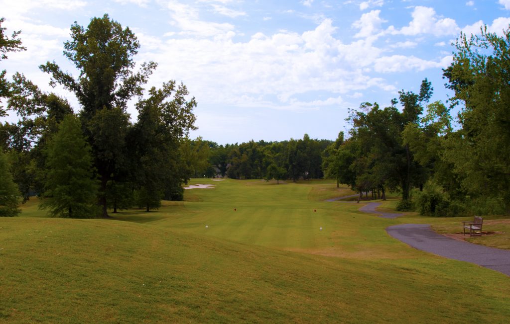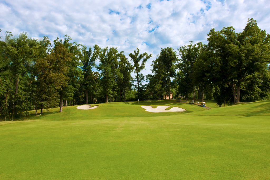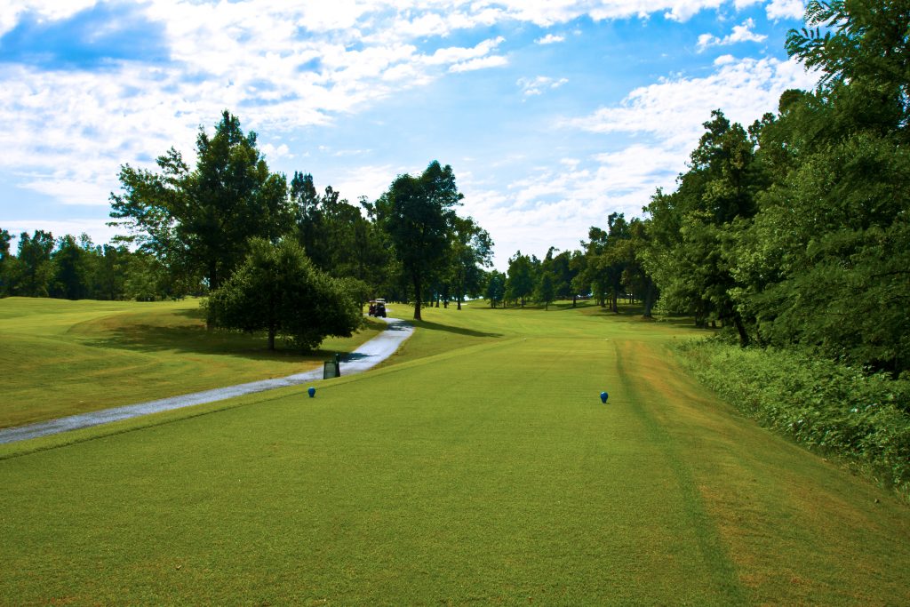 This hole is known as “the toughest par 4 in Western Kentucky”. A player can challenge the fairway bunker on the right, setting up a shorter approach. Or you can play safe to the left and short which will set up a long iron approach. Once the tee shot is in play, make sure to avoid the right side of the green which falls off into a steep slope.
