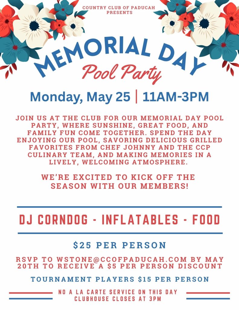 Memorial Day Pool Party Whitney StoneJanuary 22, 2026Comments Off on Memorial Day Pool PartyDining Room / Social Events (App)